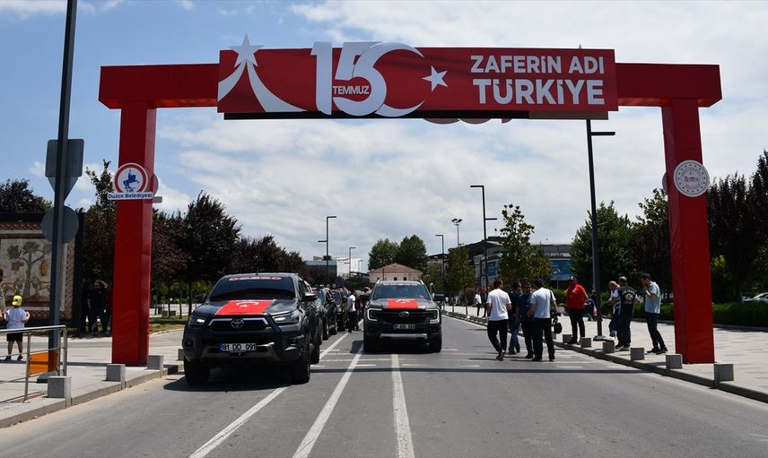 Düzce Valiliği ve Düzce Otomobil Sporları ve Off-Road Kulübü işbirliği ile düzenlenen bu etkinliğe, 72 arazi aracı ay yıldızlı bayraklarla katıldı. Düzce Valisi Selçuk Aslan, etkinliğin başlangıç noktasında yaptığı açıklamada, 9 yıl önce milletin Cumhurbaşkanı Recep Tayyip Erdoğan liderliğinde yazdığı zafer ve demokrasi destanını anımsattı.