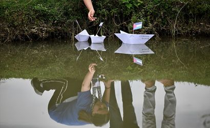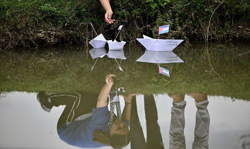 Düzce'de öğrenciler, Gazze'ye insani yardım ulaştırmak için yola çıkan ve İsrail'in saldırısına uğrayan Küresel Sumud Filosu'na destek için kağıttan yaptıkları gemileri suya bıraktı.