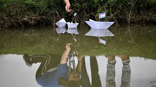 Düzce'de Kasım Aktaş Ortaokulu öğrencileri, 81 kağıt gemiyi Efteni Gölü'ne bırakarak Küresel Sumud Filosu'na destek gösterdi.