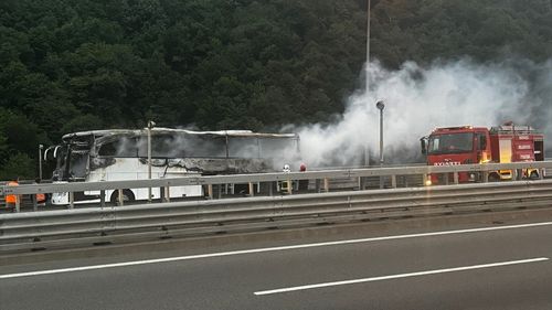 Anadolu Otoyolu'nda yolcu otobüsündeki yangın nedeniyle İstanbul istikameti trafiğe kapandı.