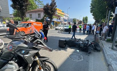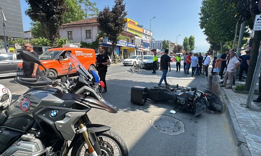 Düzce'de meydana gelen kazada, bir otomobil ile polis motosikletinin çarpışması sonucu 2 polis memuru yaralandı.