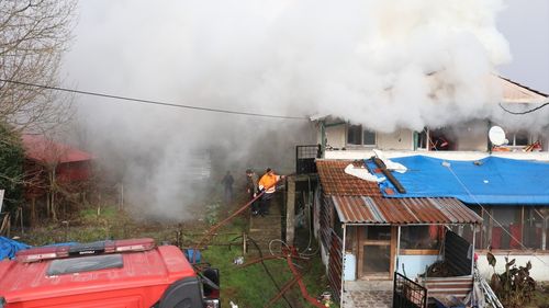 Düzce Cumayeri'nde çıkan yangında bir iki katlı ev kullanılamaz duruma geldi. İtfaiye ekipleri zamanında müdahale etti.