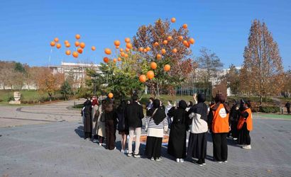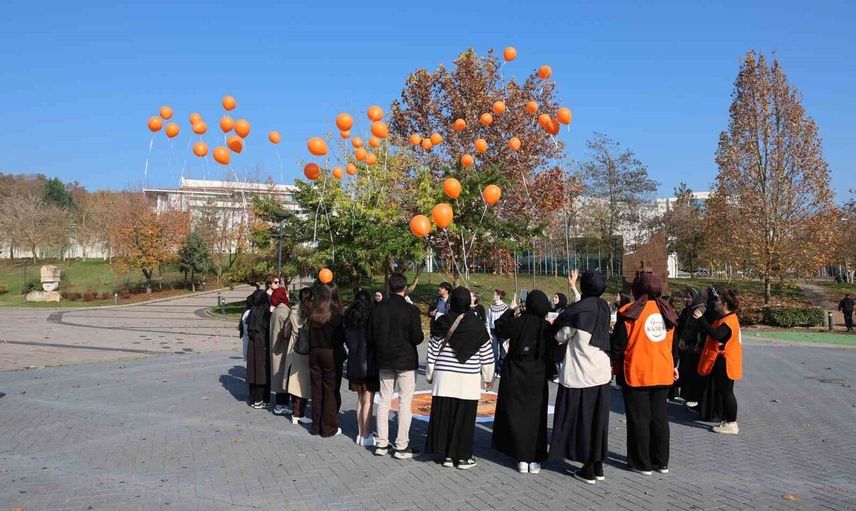 Düzce Üniversitesi'nde turuncu balonlarla kadına yönelik şiddete dikkat