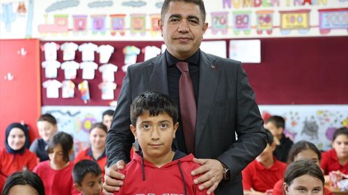 Düzce Valisi Selçuk Aslan, Gazi Mustafa Kemal Ortaokulu 5. sınıf başkanı Alper Cinel'in 'Seçilirsem Sayın Valimizi sınıfa davet edeceğim.' vaadini yerine getirdi.