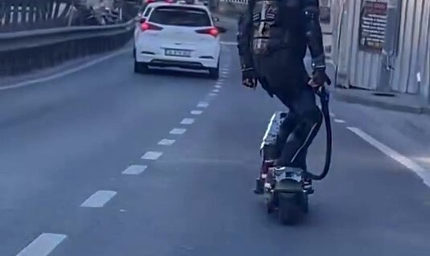 E-5 üzerinde bir vatandaşın scooter ile gerçekleştirdiği yolculuk, yoldaki diğer sürücülerin dikkatini çekti. Sürücünün trafiğin içinde ilerlemesi görenleri şaşırttı.