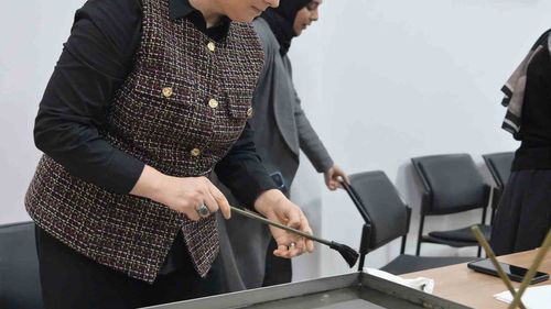 Ebruzen Hikmet Barutçugil, Esenyurt Belediyesi'nin Ocak etkinliğinde Kadın Sanat Merkezinde söyleşi ve atölye gerçekleştirdi; kursiyerlerin katı sanatıyla hazırladığı tablolar kendisine sunuldu.