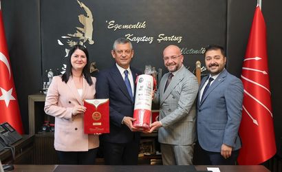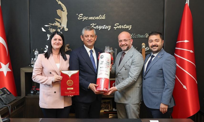 Edirne Belediye Başkanı Filiz Gencan Akın (solda), CHP Genel Başkanı Özgür Özel'i, 4-6 Temmuz tarihleri arasında düzenlenecek 664. Tarihi Kırkpınar Yağlı Güreşleri'ne davet etti. Özel'in Türkiye Büyük Millet Meclisi'ndeki makamında gerçekleşen ziyarette, Edirne Milletvekili Ahmet Baran Yazgan (sağda) ve 664. Kırkpınar Ağası Ufuk Özünlü (sağ 2) de yer aldı. Ziyarette Özel'e, Kırkpınar’ın geleneksel davet simgesi olan kırmızı dipli mum ve davetiye verildi.