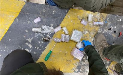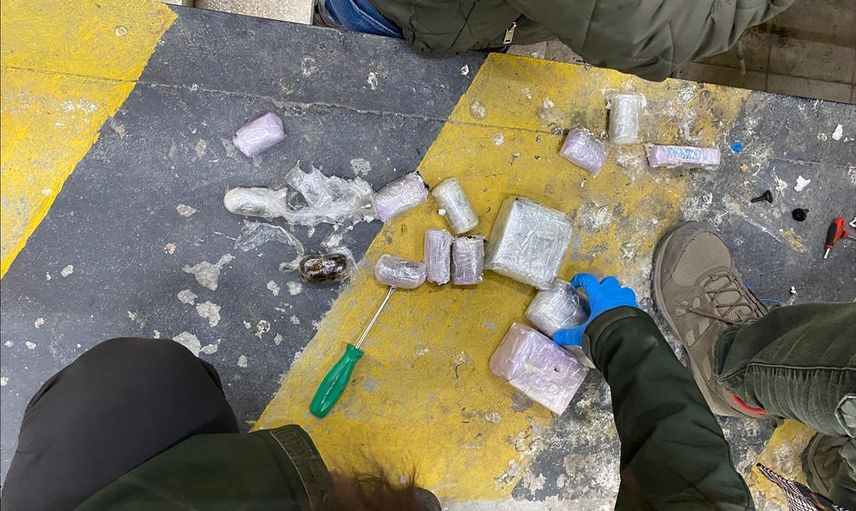Öte yandan, şüpheli yoğunluk tespit edilen minibüsün zeminine yerleştirilen ve suntayla kapatılan bölmede metal plakalar bulundu. Plakaların altındaki lastik kauçuk maddeler içerisinde vakumlu poşetlerde 45 kilo 823 gram kokain ele geçirildi.