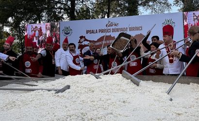 Valilikçe düzenlenen "Topraktan Sofraya Edirne Gastronomi Festivali" kapsamında, Söğütlük Millet Bahçesi'nde festivalin 3'üncü gününde coğrafi işaretli İpsala pirinciyle dev tencerede 6 ton pilav pişirildi ve vatandaşlara dağıtıldı.