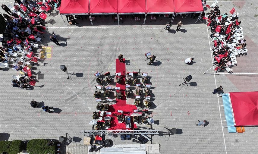 Edirne'de 5. Kolordu Bölge Bando Komutanlığı ekibi, 23 Nisan Ulusal Egemenlik ve Çocuk Bayramı dolayısıyla, Havsa ilçesine bağlı Necatiye köyündeki Şehit Engin Şahin İlkokulu'nun bahçesinde sahne aldı.
