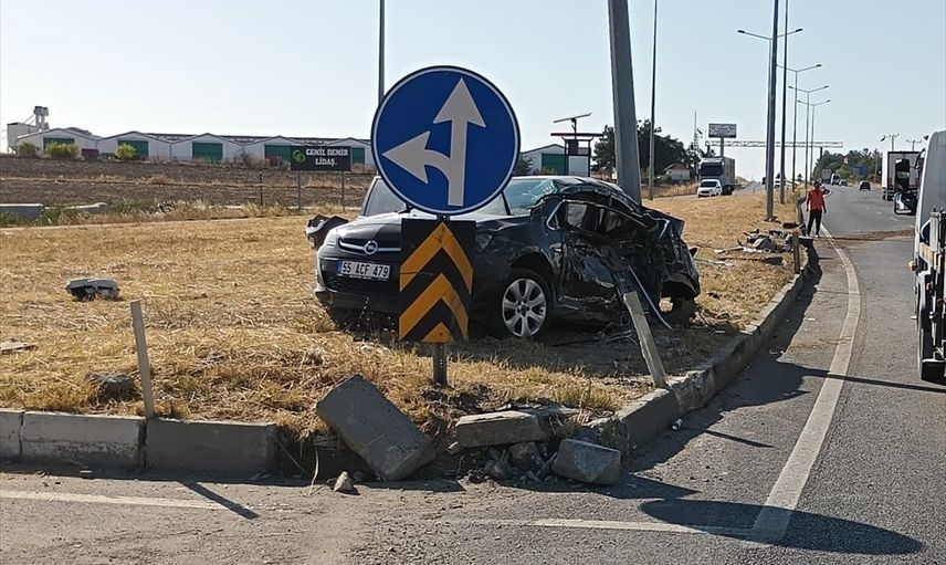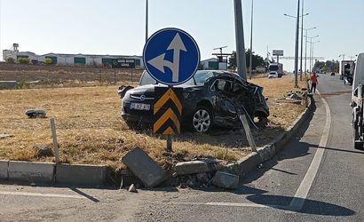 Çarpmanın etkisiyle savrulan otomobil, refüjdeki aydınlatma direğine çarparak durdu.