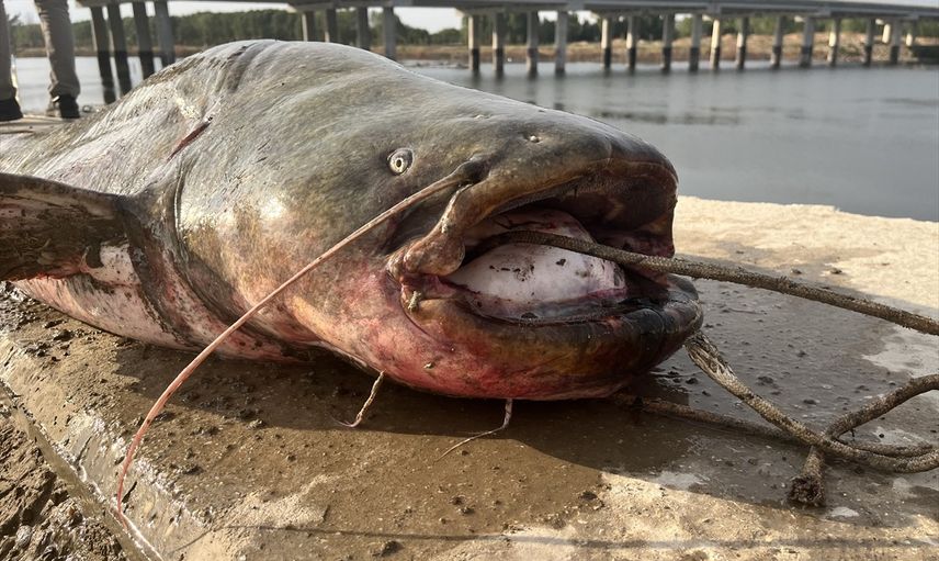 Edirne'de Meriç Nehri'nde 2,5 m ve 100 kg'lık yayın yakalandı