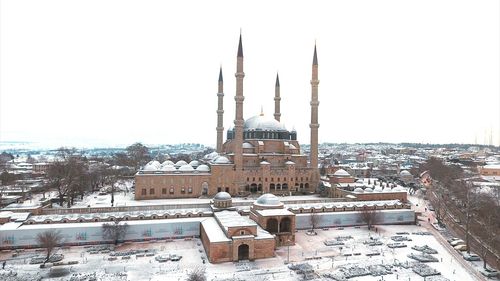 Edirne'de Selimiye Camisi, kar yağışıyla birlikte eşsiz bir güzelliğe ulaştı. Tarihi eserler beyaz örtüyle kaplandı.