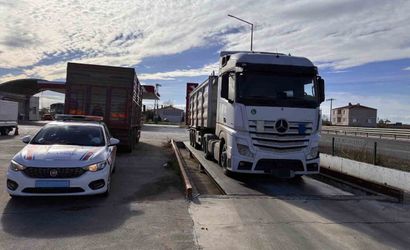 Hamidiye-Harmanlı köy yolu üzerinde gerçekleştirilen kontrolde, yük taşıyan tırın azami yüke göre yüzde 25 fazla yüklendiği ve taşıma irsaliyesi olmadan yük taşıdığı tespit edildi.