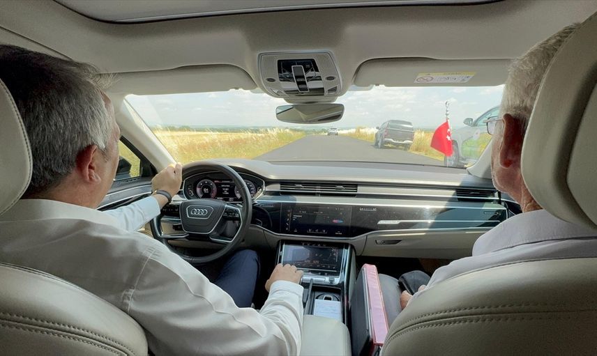 Edirne Valisi Yunus Sezer, direksiyon başına geçerek "otoyol" kalitesinde sıcak asfaltla kaplanan köy yollarını "Lütfü Amca" ile test etti.