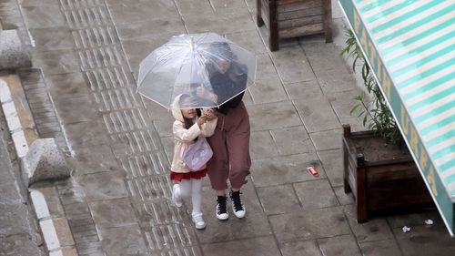 Edirne ve Kırklareli'nde etkili olan sağanak yağış, su birikintileri oluşturdu; vatandaşlar yağmurdan korunmaya çalıştı.