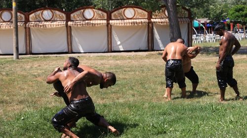 Pehlivanlar Yağlı Güreşte Destek İstiyor 664. Tarihi Kırkpınar Yağlı Güreşleri öncesi hazırlıklarını hızla sürdüren Edirneli pehlivanlar, iş insanlarından destek beklediklerini dile getirdi. Sarayiçi Er Meydanı'nda antrenmanlarına aralıksız devam eden pehlivanlar, öğle saatlerinde sıcak havaya aldırış etmeden kispetlerini giymekte ve zeytinyağı…