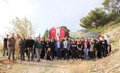 Edremit Anadolu Lisesi öğrencileri, Güre Kavurmacılar Mahallesi'nde oluşturulan Hatıra Ormanı'nda fidan dikim etkinliği gerçekleştirdi.