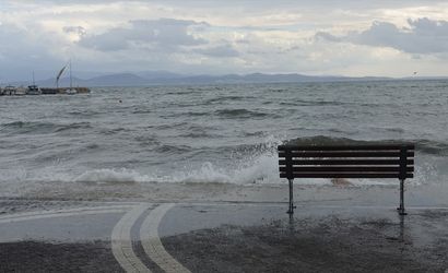 Fırtına nedeniyle kıyı şeridinde hasar oluştu; bazı işletmelerde masa ve sandalyeler rüzgarın etkisiyle devrildi.