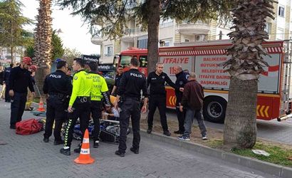 Balıkesir’in Edremit İlçesi Azerbaycan Bulvarı üzerinde meydana gelen motosiklet kazasında sürücü Ş.G.'nin ayağı motosikletin aksamları arasında sıkıştı.