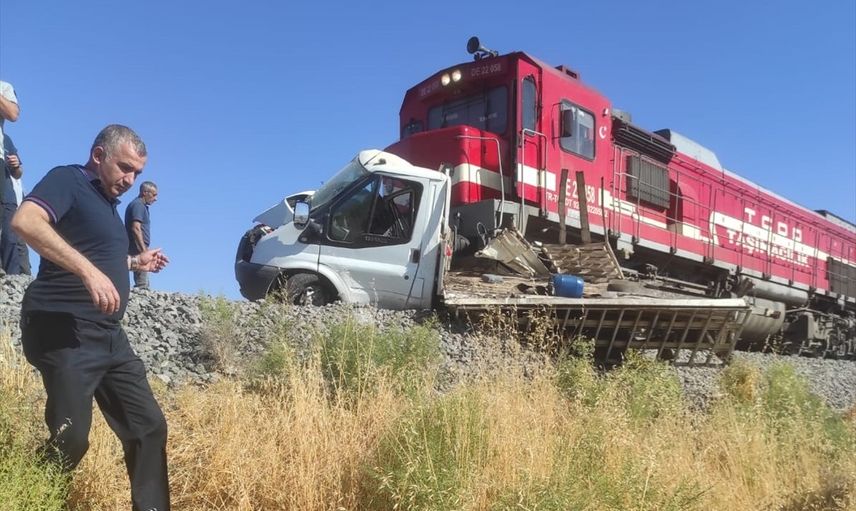 Elazığ'da trenin hemzemin geçitte çarptığı kamyonetin sürücüsü yaralandı.