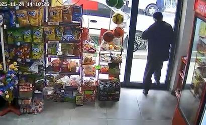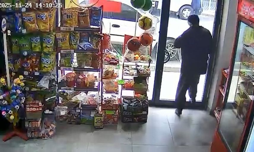 O anlar, iş yerinin güvenlik kamerasına yansıdı. Görüntülerde, kişinin alışverişini tamamlayıp çıkış yaptığı ve kapıyı fark etmeden ilerleyerek camın kırıldığı an görülüyor.