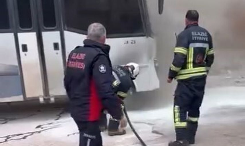 Elazığ'da Park Halindeki Midibüs Alev Aldı
