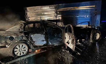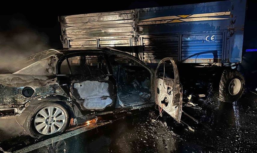 ELAZIĞ’DA TRAKTÖR RÖMORKUNA ARKADAN ÇARPAN OTOMOBİL, ALEV ALEV YANDI. FECİ KAZADA 2 KİŞİ YARALANDI