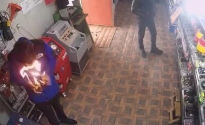 Elazığ'da bir oto elektrik dükkanında meydana gelen olayda, çalışanın elinde bulunan yapıştırıcı sprey, kabloyu eritmek için çaktığı çakmak nedeniyle bir anda alev aldı.
