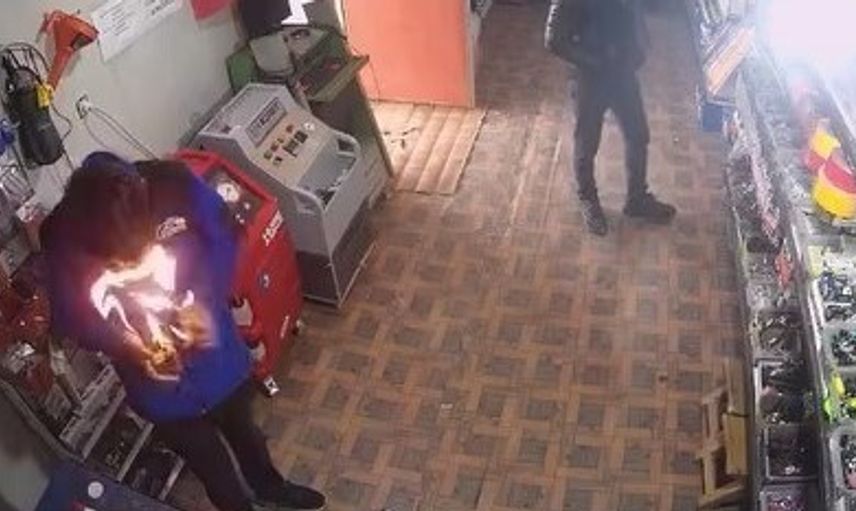 Yaşanan tehlikeli anlar, iş yerindeki kameralar tarafından kayda alındı ve görüntülere yansıdı.