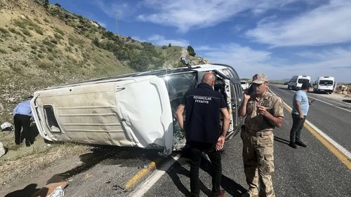 Elazığ'ın Palu ilçesinde yolcu minibüsünün devrilmesi sonucu 7 kişi yaralandı, 3'ünün durumu ağır.