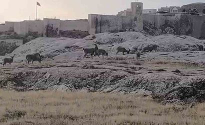 Elazığ'ın tarihi Harput Mahallesinde sabah saatlerinde sürü halinde dağ keçileri görüntülendi.