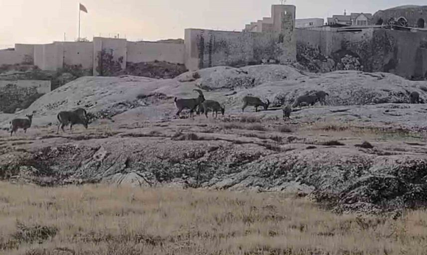 Nesli koruma altında bulunan ve avlanması yasak olan keçilerin Harput Kalesi'nin hemen altında otlandığı görüldü.