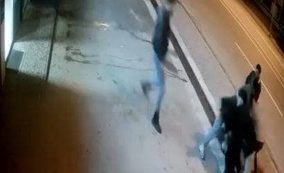 Olay anı, çevredeki bir iş yerinin güvenlik kamerasına yansıdı. Görüntülerde mağdurun saldırıya uğradığı, yere düştüğü ve darp edilmeye devam edildiği görülüyor.