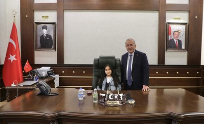 Elazığ Valisi Numan Hatipoğlu, vali olma hayali olan 10 yaşındaki ilkokul öğrencisini makamında misafir etti.