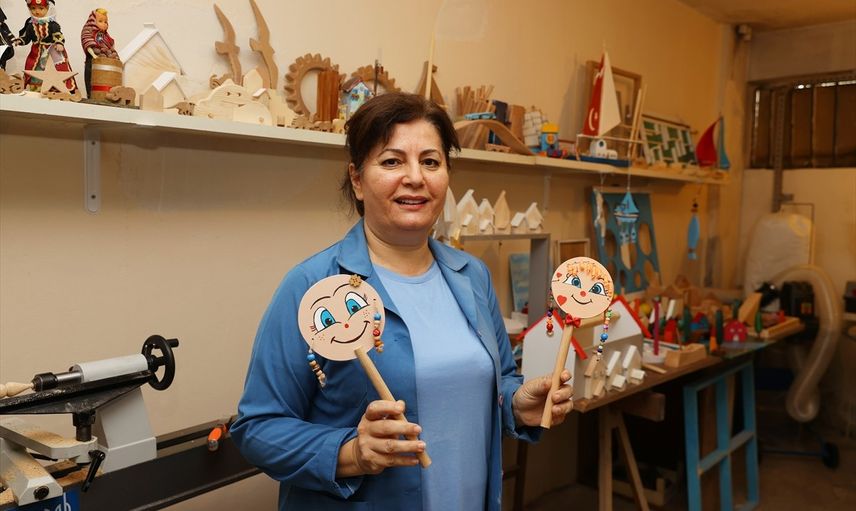Trabzon'da 53 yaşındaki emekli öğretmen Gülen Deniz, yaşadığı apartmanın bodrum katındaki atölyede ürettiği ahşap oyuncaklarla çocukların el becerilerine ve zihinsel gelişimlerine katkı sağlamayı hedefliyor.