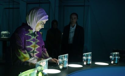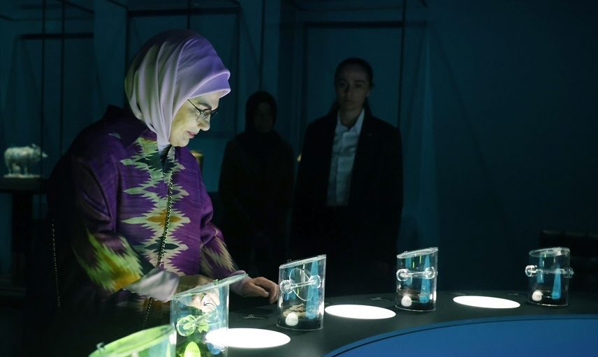 Emine Erdoğan, müzedeki "Masada Bir Yer: İslam Dünyasında Sofra, Yemek ve Ziyafet Geleneği" sergisini gezerek eserleri yakından inceledi. Sergi, İslam dünyasındaki yemek, sofra ve paylaşma kültürünün tarihsel ve kültürel gelişimini merkeze alıyor.