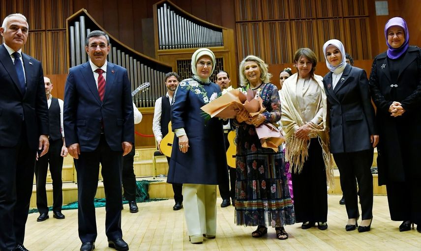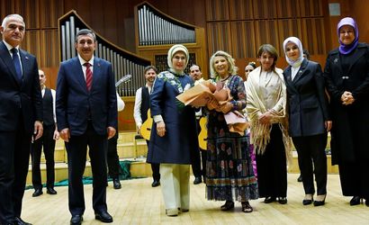 Tüm geliri Gazze halkına bağışlanacak "Rüzgar Gibi Özgür Filistin İçin Tek Yürek" etkinliği, Cumhurbaşkanı Recep Tayyip Erdoğan'ın eşi Emine Erdoğan'ın (sağ 2) katılımıyla gerçekleştirildi. Etkinliğe, Cumhurbaşkanı Yardımcısı Cevdet Yılmaz (sağda) ve İspanya'nın Ankara Büyükelçisi Cristina Latorre Sancho (sağ 3) da katıldı.