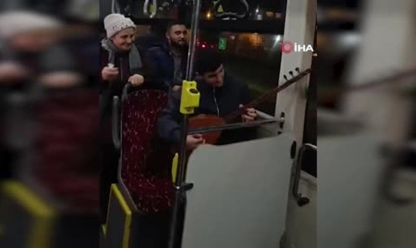 Seyir halindeki otobüste bir yolcu sazını çıkararak türkü çalmaya başladı ve araç içini adeta küçük bir konser salonuna çevirdi.