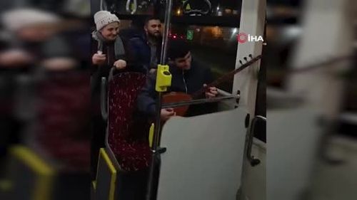İETT'nin 336 Eminönü-Arnavutköy seferinde bir yolcunun sazıyla başlayan türkü performansı, otobüsü küçük bir konsere çevirdi; yolcular anları cep telefonuyla kaydetti.