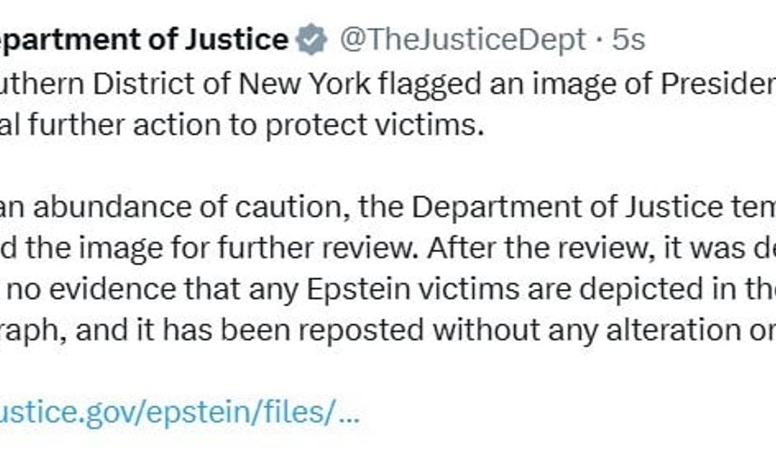 ABD Adalet Bakanlığı ise, yayınlanan Epstein belgeleri arasında yer alan ve Trump’ın görüldüğü görselin inceleme için geçici olarak yayından kaldırıldığını açıkladı. Bakanlık, inceleme sonucunda fotoğrafta Epstein kurbanlarından herhangi birinin görülmediğine dair kanıt bulunmadığını ve fotoğrafın herhangi bir değişiklik veya sansür uygulanmadan yeniden yayınlandığını bildirdi. Açıklamada, söz konusu fotoğrafa erişim sağlayan bağlantının da paylaşıldığı belirtildi.