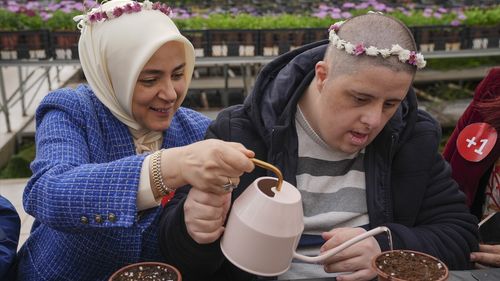 AK Parti Kadın Kolları Başkanı Ercan, Down Sendromu Farkındalık Günü'nde çocuklarla ata tohumu ekimi etkinliğine katıldı.