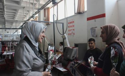 AK Parti Genel Merkez Kadın Kolları Başkanı Tuğba Işık Ercan, Arnavutköy'de bir fabrikada çalışan kadınlara 1 Mayıs Emek ve Dayanışma Günü kapsamında çiçek dağıttı.