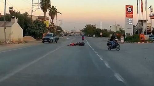 Mersin'in Erdemli ilçesinde iki motosikletin karıştığı kaza, bir otomobilin araç kamerasına yansıdı; kazada yaralanan sürücünün durumu iyi.