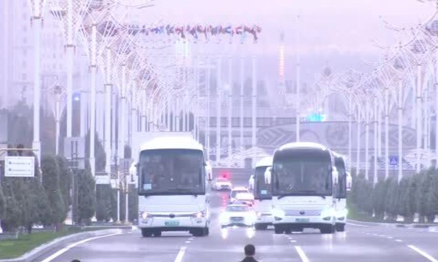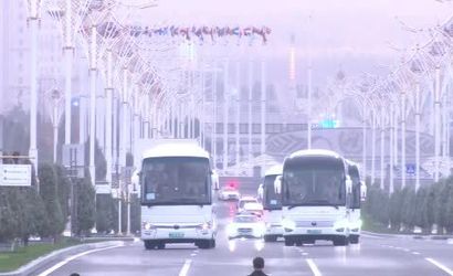 Cumhurbaşkanı Erdoğan Türkmenistan'ın başkenti Aşkabat'ta Tarafsızlık Anıtı'na çelenk koyma törenine katıldı