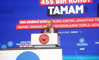 Erdoğan: "Devletle milleti karşı karşıya getirmeye çalışanlar yok" — 455 bininci afet konutu Hatay'da