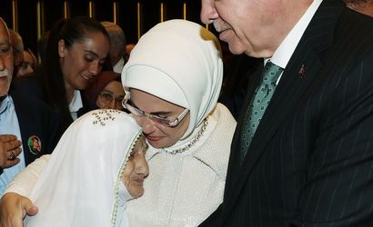 Cumhurbaşkanı Recep Tayyip Erdoğan, Cumhurbaşkanlığı Külliyesi'nde düzenlenen 30 Ağustos Zafer Bayramı Özel Konseri programına katıldı. Cumhurbaşkanı Erdoğan, 93 yaşındaki Erzurumlu Şefika Taş ile bir süre sohbet etti.