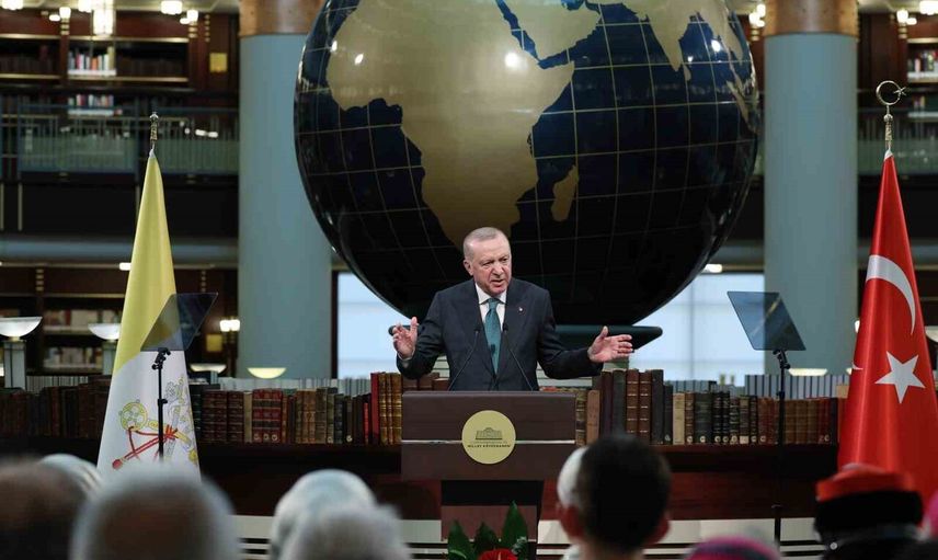 CUMHURBAŞKANI RECEP TAYYİP ERDOĞAN, VATİKAN DEVLET BAŞKANI PAPA 14. LEO CUMHURBAŞKANLIĞI MİLLET KÜTÜPHANESİ CİHANNÜMA SALONUN’DA DAVETLİLERE HİTAP ETTİ.