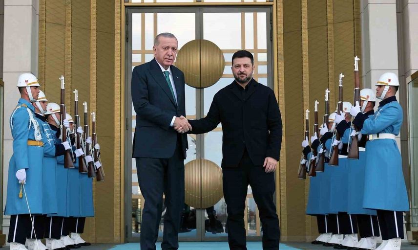 Cumhurbaşkanı Recep Tayyip Erdoğan ile Ukrayna Devlet Başkanı Vladimir Zelenskiy Cumhurbaşkanlığı Külliyesi’nde bir araya geldi. Zelenskiy, Türkiye’ye yaptığı ziyaret kapsamında resmi törenle karşılandı. İki lider törenin ardından baş başa görüşme gerçekleştirdi, çalışma yemeği sonrası ortak basın toplantısında gündeme dair açıklamalarda bulundu.