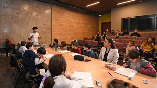 Osmangazi Belediye Başkanı Erkan Aydın, Panorama 1326 Bursa Fetih Müzesi'ndeki Çocuk Kitabı Çizim Atölyesi'nde öğrencilerle buluştu.